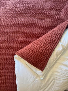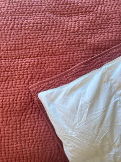 My teenage daughter’s bed needed a revamp - everything was just tired, flat and blah. So we started with the cozy part! She wanted a quilt over the top of a down blanket and she likes a warm bed so we went with a blanket that is ‘medium' warmth. This down blanket is technically a comforter that is typically used inside a duvet cover, but I don’t think that’s a necessity and it has worked great as a loose down blanket too. One caveat: there are loops on the blanket for duvet corner ties, but we might just cut them off, undecided. The best part though is that it’s actual down (not alternative), super fluffy, and a great price point! It comes in all sizes and varying warmths. We love the big square baffles and it’s so soft and warm without being overwhelmingly huge and fluffy!- Erin